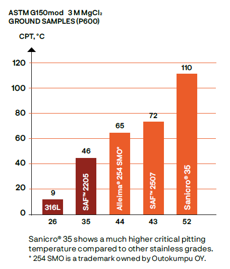 • Pitting and crevice corrosion resistance