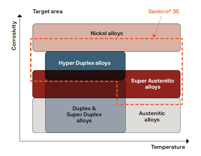 See how Sanicro® 35 fills the gaps as a cost effective alternative to high nickel alloys, when the properties of a standard duplex or austenitic grade may be insufficient.
