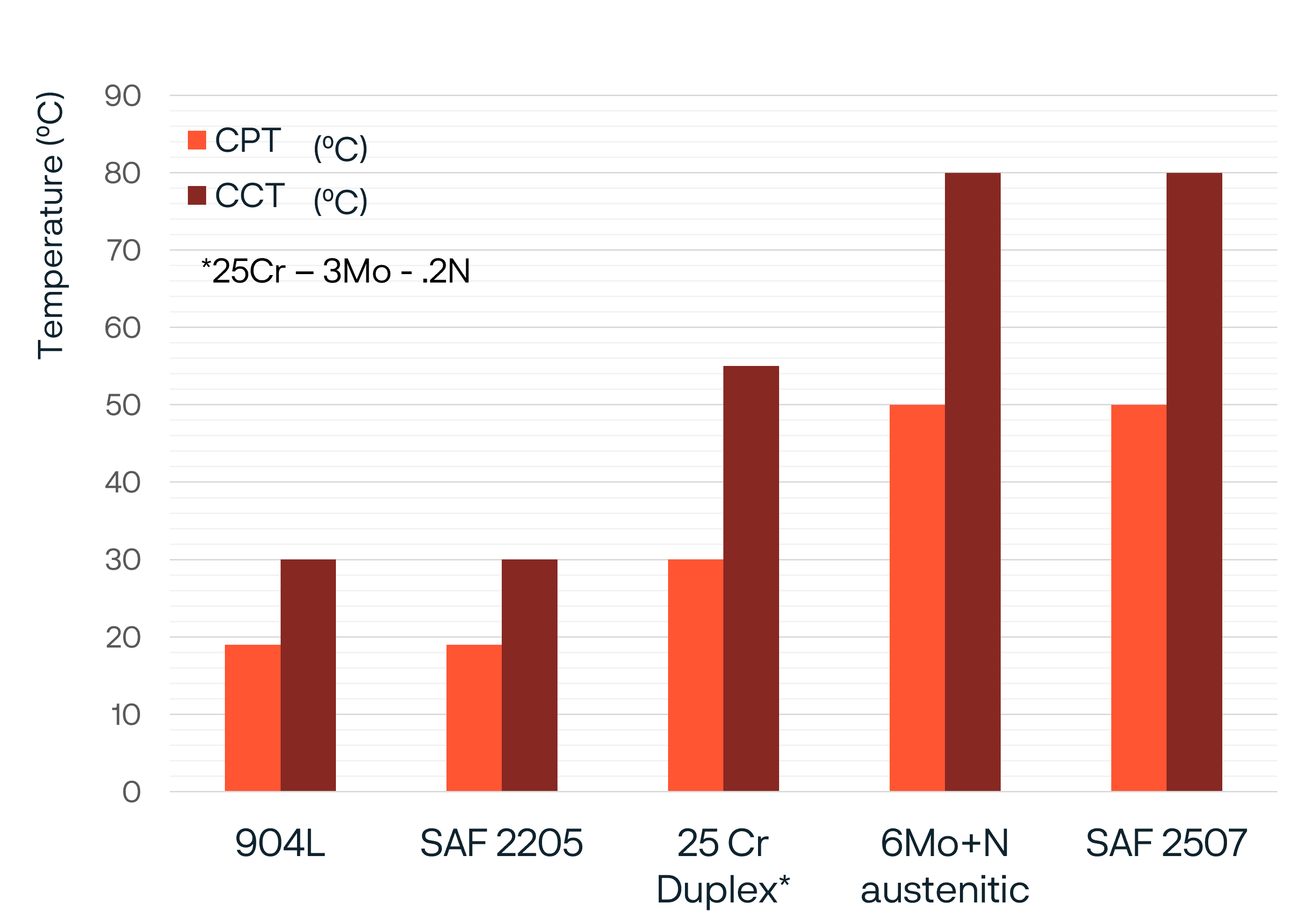 • Resistance to stress corrosion cracking in chloride-bearing environments