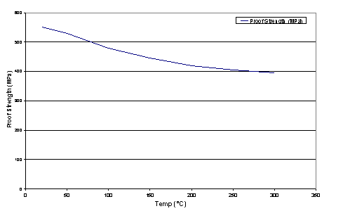 The strength of the material decreases to some extent with increasing temperatures. Fig. 2 shows indicative minimum values for proof strength of SAF™ 2507 at high temperatures. More detailed information can be supplied on request.