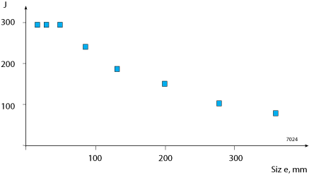 SAF™ 2507 possesses good impact strength. Figure 3 shows typical impact energy values for SAF™ 2507 bar-steel, in different sizes, at -20°C (-4°F), using standard Charpy V specimens. Samples are taken in the longitudinal direction. The impact energy (Charpy V) at 20°C (68°F) is 100 J (74 ft-lb) min.