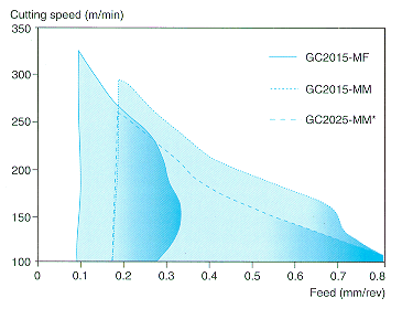The lowest recommended cutting speed is determined by the tendency of the material to stick to the insert (built-up edge), although the integrity of insert clamping and the stability of the machine are also of great significance.