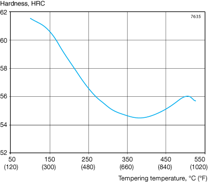 | Hardened and tempered | 1700-2000 (247-290) | 545-633 | 52-57 |