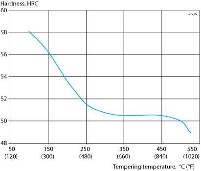 Hardening temperature 1070°C (1960°F), holding time 3 minutes, quenching in oil.
