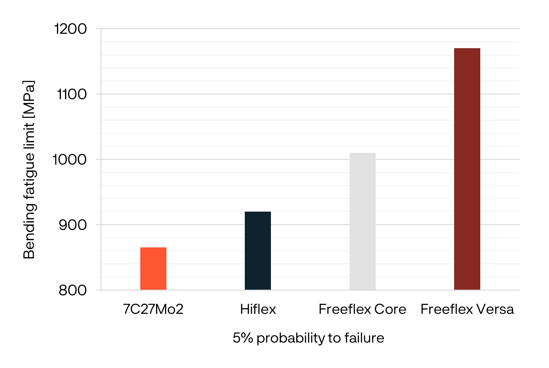 The fatigue strength of Freeflex® Core compressor valve steel in reversed bending is ±1010 MPa (±146 ksi) at a failure rate of 5%.
