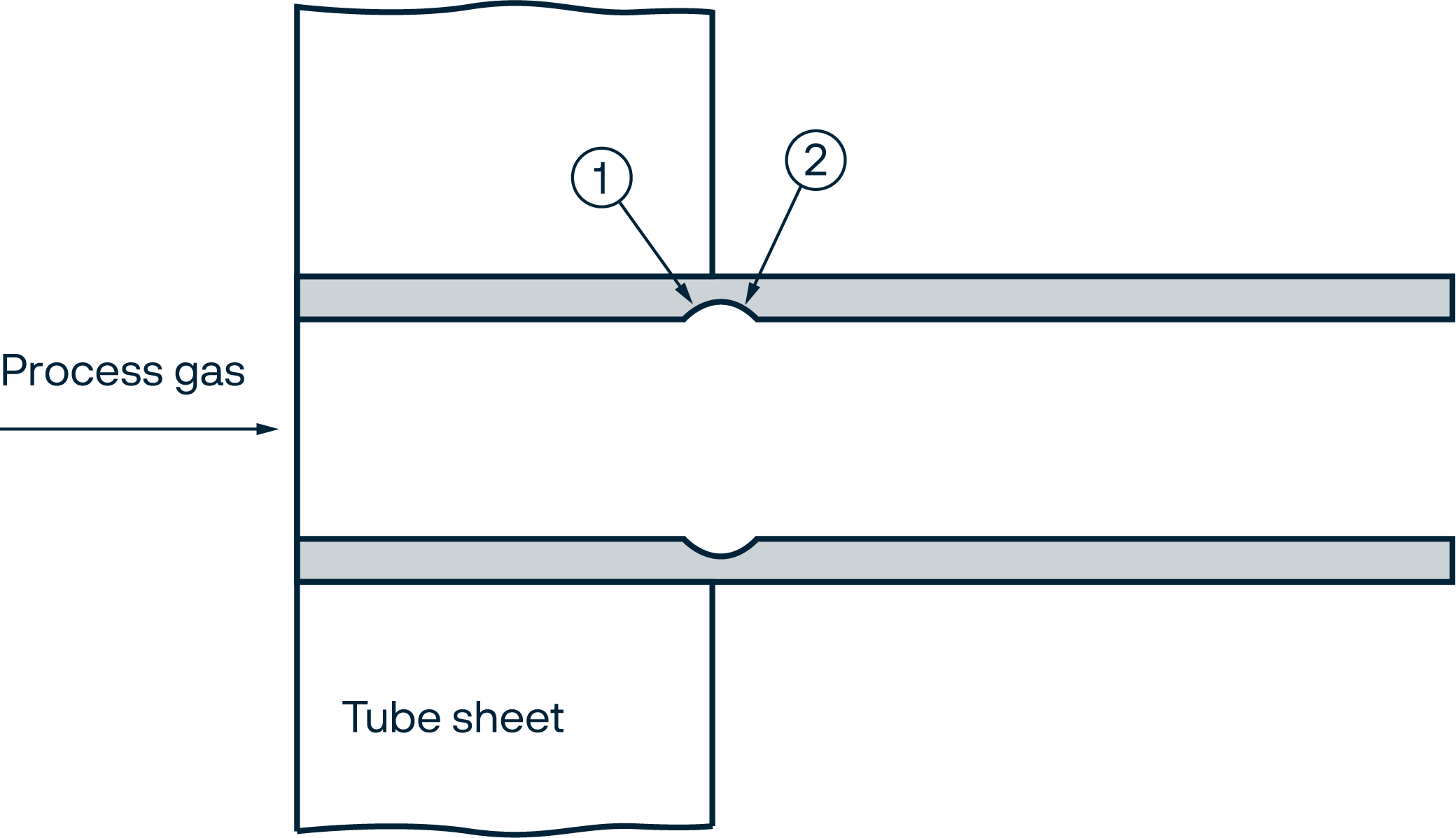 The main reason for highly corrosive conditions in tail gas preheaters is that droplets of nitric acid are entrained in the tail gas from the absorption tower. When this gas enters the heater, the droplets settle on the hot tube wall and start boiling. The temperature of the heating medium, usually hot process gas or steam, can be very high. In this type of condition, ASTM 304L tends to have a short service life. Tubes and tube sheets manufactured in Alleima® 2RE10 are recommended for a long service life