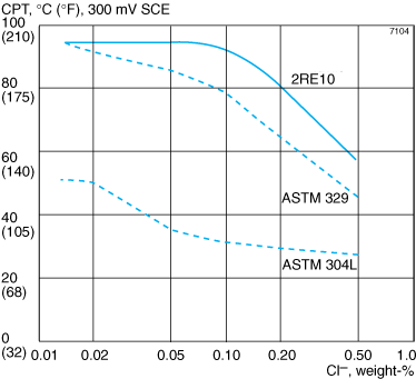 The higher nickel content makes Alleima® 2RE10 slightly more resistant to stress corrosion cracking (SCC) than conventional austenitic stainless steels, such as ASTM 304L.
