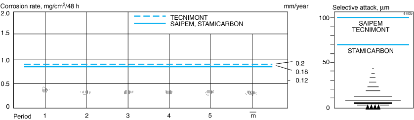 A statistical evaluation of Huey tests, as specified in the urea specifications, is shown in Figure 2. A maximum value of 0.12 mm/year (4.8 mpy,