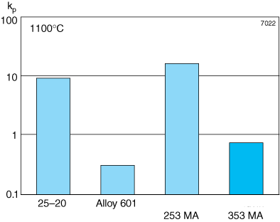 In nitrogen pick-up tests, Figure 5, Alleima® 353 MA showed similar resistance to Alloy 601.