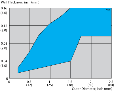 Tube and pipe are supplied in the as cold reduced or cold reduced and heat treated to the annealed or stress relieved condition. Tubing can be delivered in the following surface conditions: as cold reduced, acid etched, belt polished, or furnace oxidized. The principal size range for seamless products is shown as the white area in figure 1.